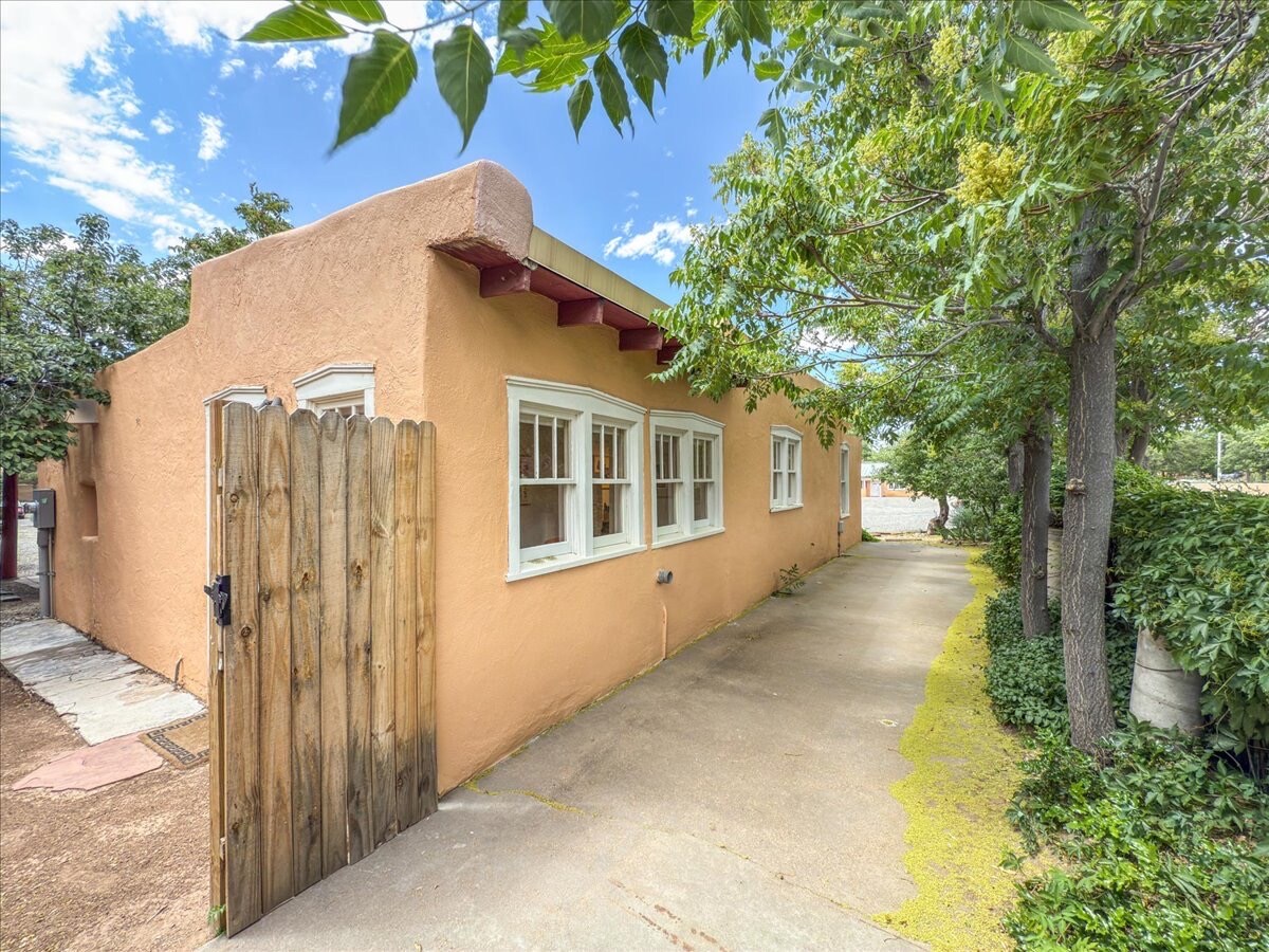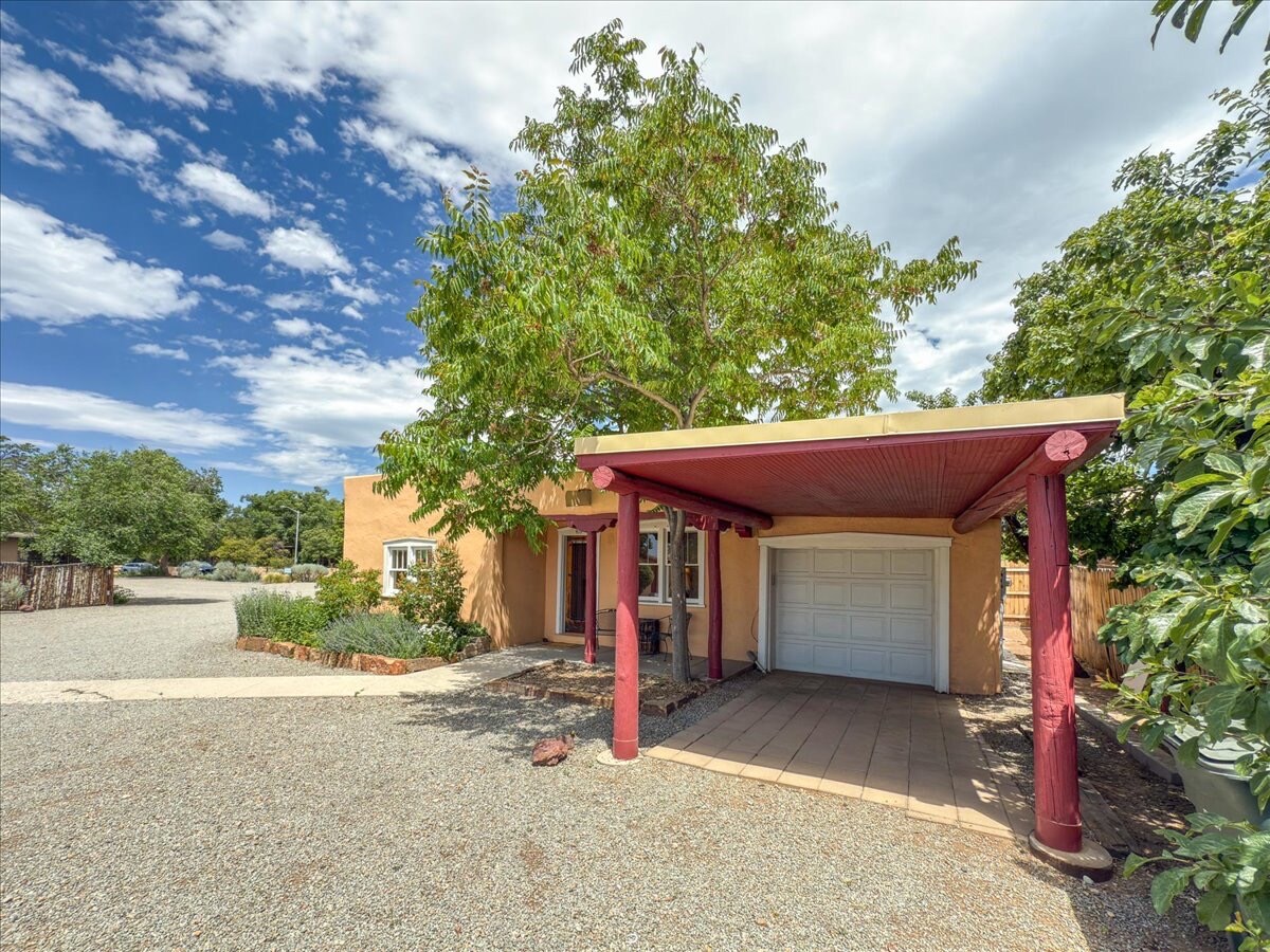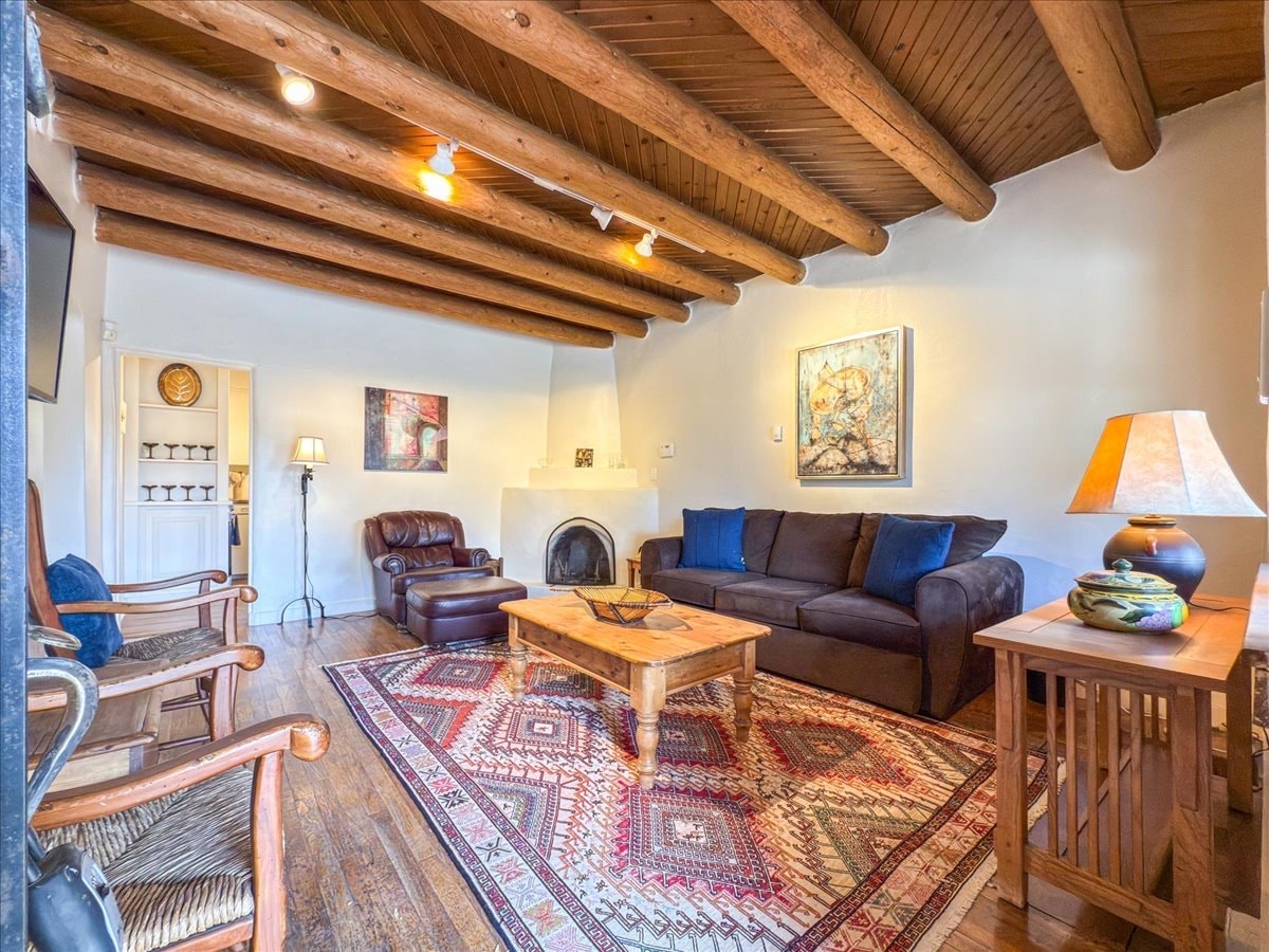 Authentic Santa Fe Architecture: From its classic vigas and corner Kiva fireplace to the original hardwood floors, this home radiates traditional adobe warmth and character.