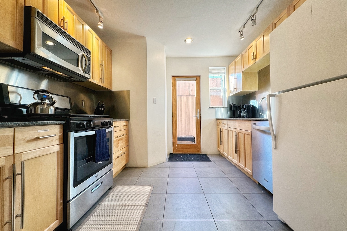 KITCHEN: A well-equipped kitchen offers a Full-size oven stove top, dishwasher, new refrigerator, Keurig and Mr. Coffee makers, microwave, blender, cookware and utensils, pantry items, creamer, and sweeteners. Service for 4: dishware, glassware, and flatware.